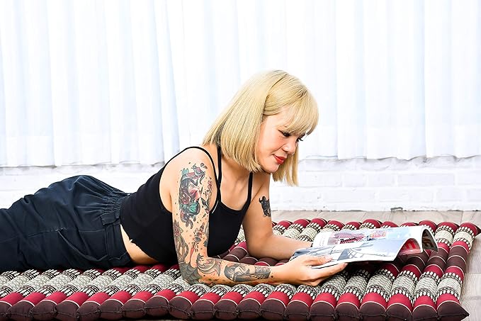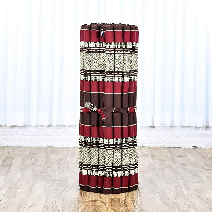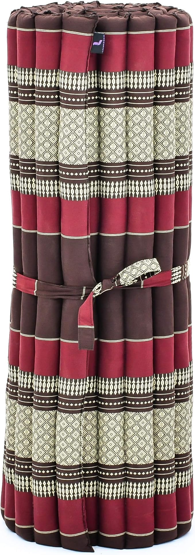 Leewadee - Kapok Roll Mat – Handcrafted Folding Sleep & Relaxation Mattress from Thailand, Ideal as Guest Bed, Camping Mat, Yoga Mat or Traditional Futon, 75 x 39 inches, Brown Red