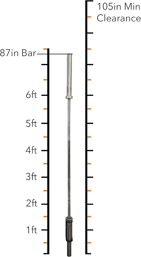 • VERSATILE FIT: Designed to accomodae both Olympic and Standard bars, our Barbell Storage Rack plays by the rules, requiring a 105" ceiling for Men's 87" bars and a 93" ceiling for Women's 79" bars. It's not just about storage; it's about making your space fit for every lift, lunge, and squat.