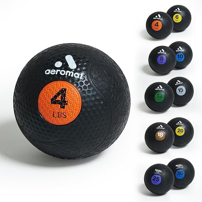 • DURABLE, WELL-BALANCED, AND COLOR-CODED DESIGN: This Aeromat Extreme Elite medicine ball set is made from tough synthetic rubber, built to endure demanding workouts. The 4 pound medicine ball comes in a vibrant orange for easy identification. With its shape retention, these weighted medicine balls for exercise provides the stability and balance required for weight balls for exercise routines, ensuring long-lasting performance in any fitness program.