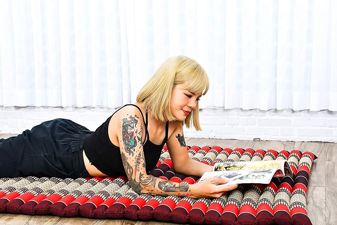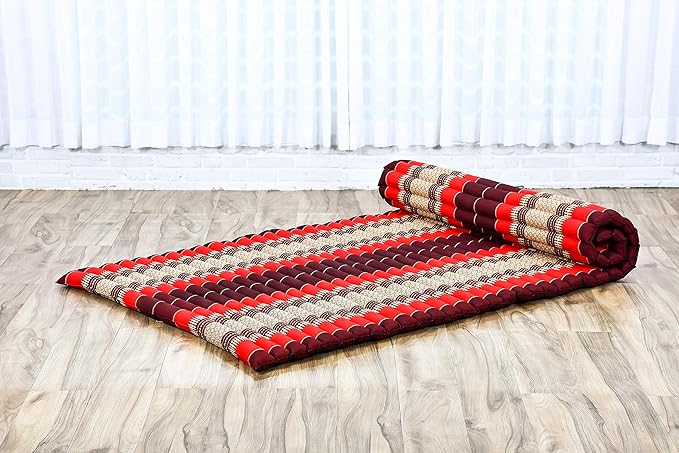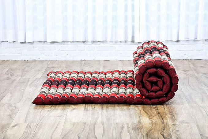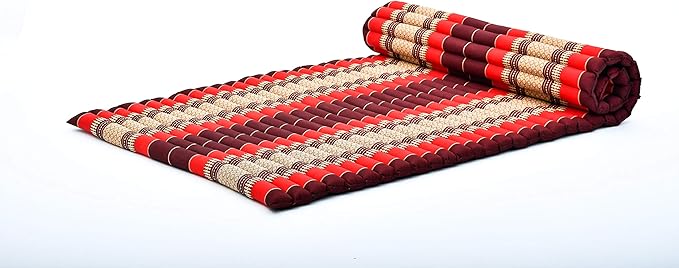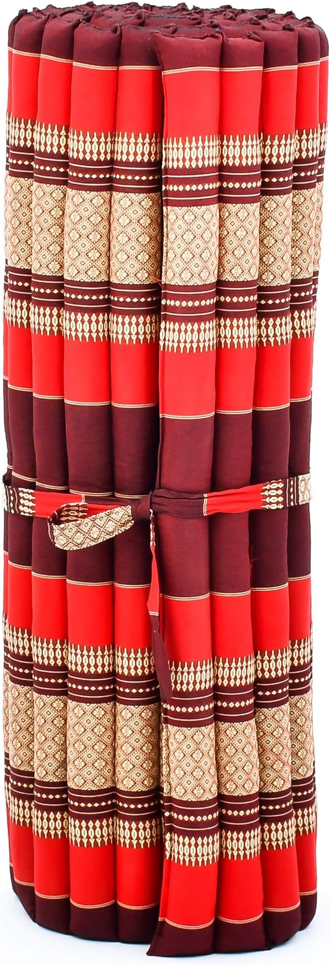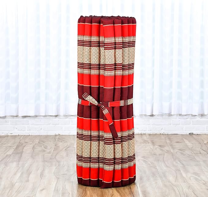 Leewadee - Kapok Roll Mat – Handcrafted Folding Sleep & Relaxation Mattress from Thailand, Ideal as Guest Bed, Camping Mat, Yoga Mat or Traditional Futon, 75 x 39 inches, Red