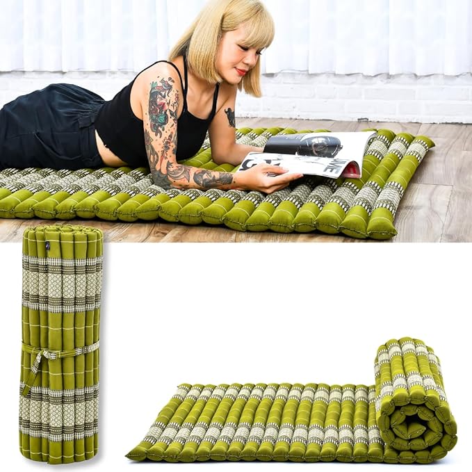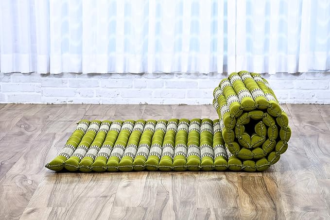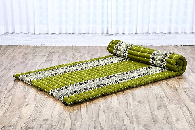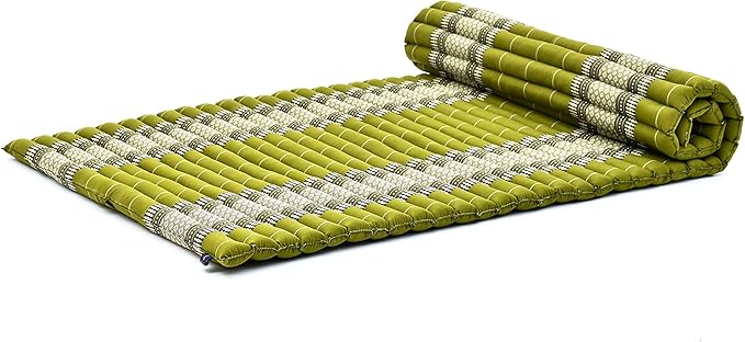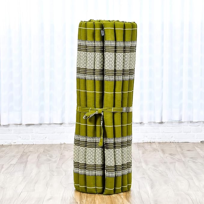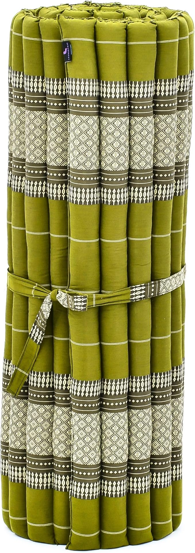 Leewadee - Kapok Roll Mat – Handcrafted Folding Sleep & Relaxation Mattress from Thailand, Ideal as Guest Bed, Camping Mat, Yoga Mat or Traditional Futon, 75 x 39 inches, Green