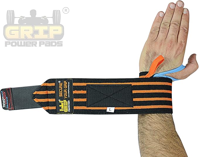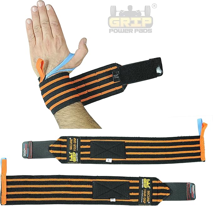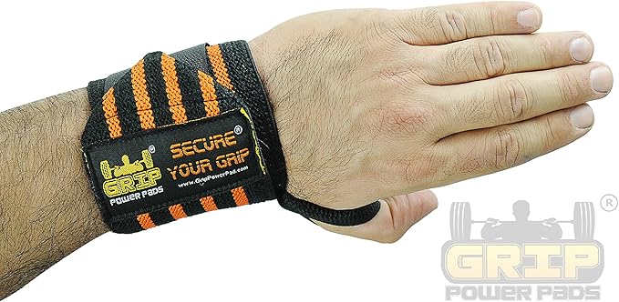 Grip Power Pads Wrist Wraps 2 Wraps for Weight Lifting Wrist Support Cotton Wraps Gym Bandage Straps for Men & Women Premium Quality & PRO Rubber