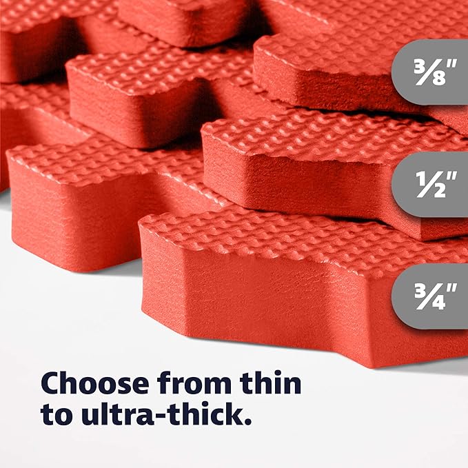 • Durable And Cushioned Flooring - We Sell Mats multipurpose EVA foam floor tiles provide a firm cushion of 1/2 inch thickness to lessen the impact of exercising and playing