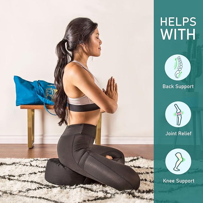 • PROMOTES BACK HEALTH: Easily reduce the risk of numb limbs when meditating for short or long periods of time with this ergonomically designed bolster pillow cushion. Enjoy the perfect support thanks to its unique shape that relieves stress on your joints, properly supports your spine, and allows you to get up from hard floors with ease. Let your yoga practice be effortless while putting less stress on your body.