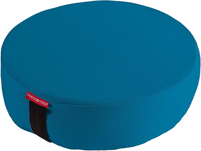 • MEDITATE IN COMFORT: The Peace Yoga Blue Zafu Meditation Cushion is a round bolster pillow filled with buckwheat, designed to improve your meditation experience. The bolster aligns your body and supports your spine during restorative yoga poses, allowing you to relax more fully. It also delivers unbeatable support, comfort, and stability throughout your yoga session. Our package includes one 13" x 13" meditation pillow.