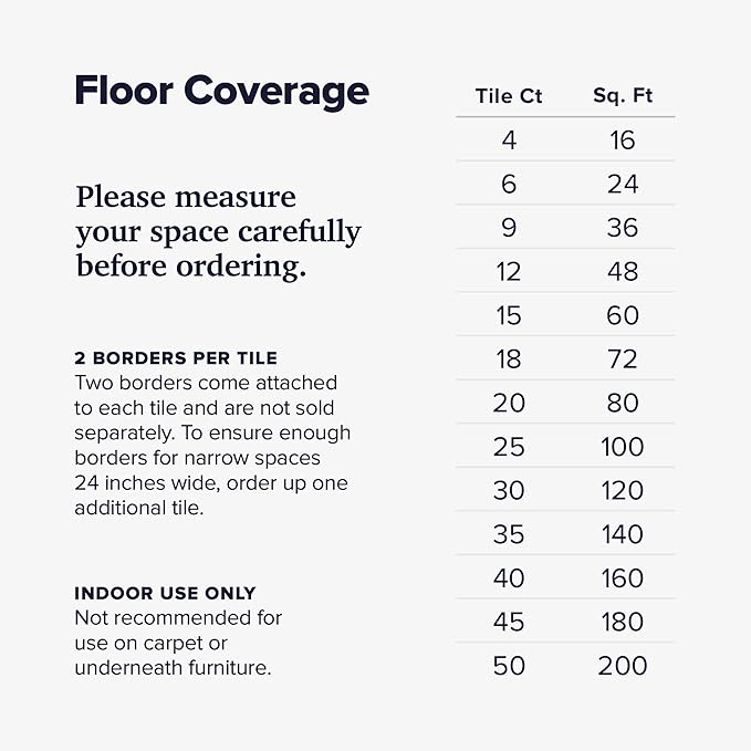 • Easy Installation - These interlocking tiles are designed for easy assembly in minutes over any hardwood or flat indoor surface, making it a breeze to add extra padding to your workout or play area.