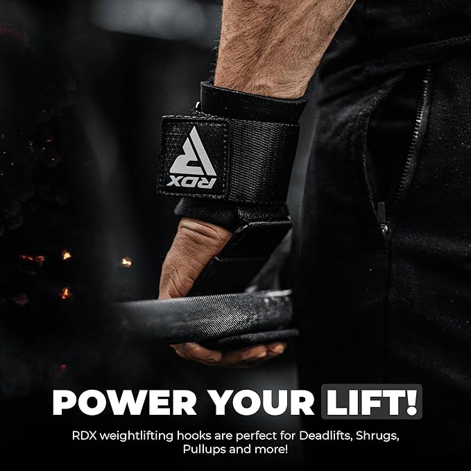 RDX Weight Lifting Hooks for Deadlifting (Pair) - 600Lbs Capacity - 8MM Neoprene Wrist Support Wraps - Grip Enhancer for Pull Ups Lat Pulldowns Rows - Adjustable Gym Workout Power Straps for Men Women