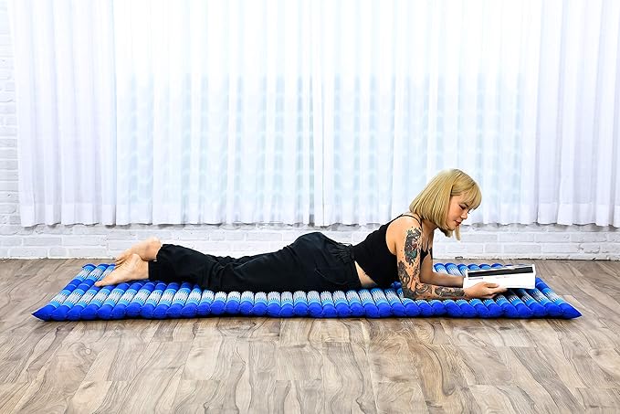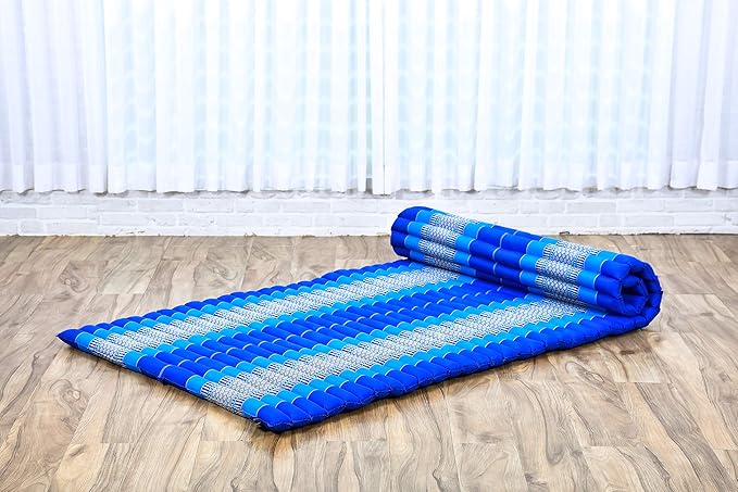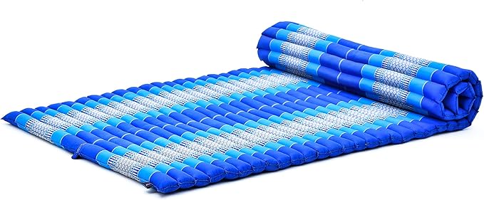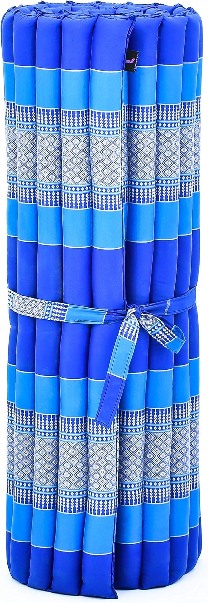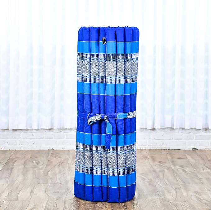 Leewadee - Kapok Roll Mat – Handcrafted Folding Sleep & Relaxation Mattress from Thailand, Ideal as Guest Bed, Camping Mat, Yoga Mat or Traditional Futon, 75 x 39 inches, Blue
