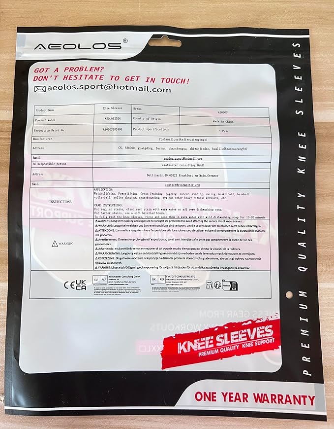 AEOLOS Knee Sleeves (1 Pair),7mm Compression Knee Braces for Heavy-Lifting,Squats,Gym and Other Sports (Large, Black)