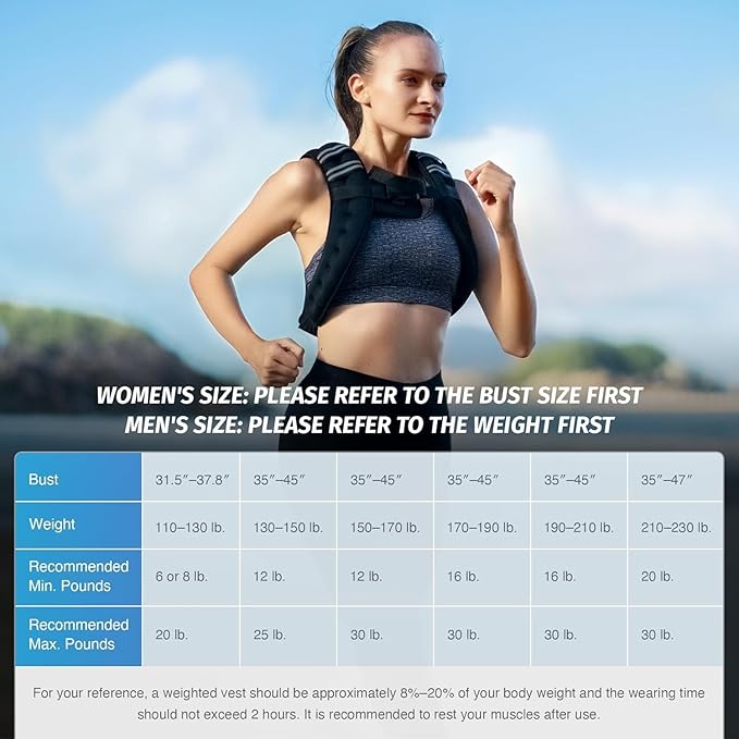 • One Size Fits Most: Our weighted vest for women and men is equipped with adjustable buckle straps that offer a snug fit for chest sizes between 31.5" and 45". No matter your body type, it stays securely in place as you work to improve your strength