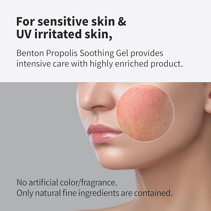 • SOOTHING AND CALMING INGREDIENTS: Benton face gel is enriched with Aloe Vera Leaf Juice and Extract, Propolis Extract, Grapefruit Fruit Extract, and other botanical ingredients. These nourishing ingredients in our face cream soothe irritated skin while providing ample nourishment, fighting and protecting from external stimuli.