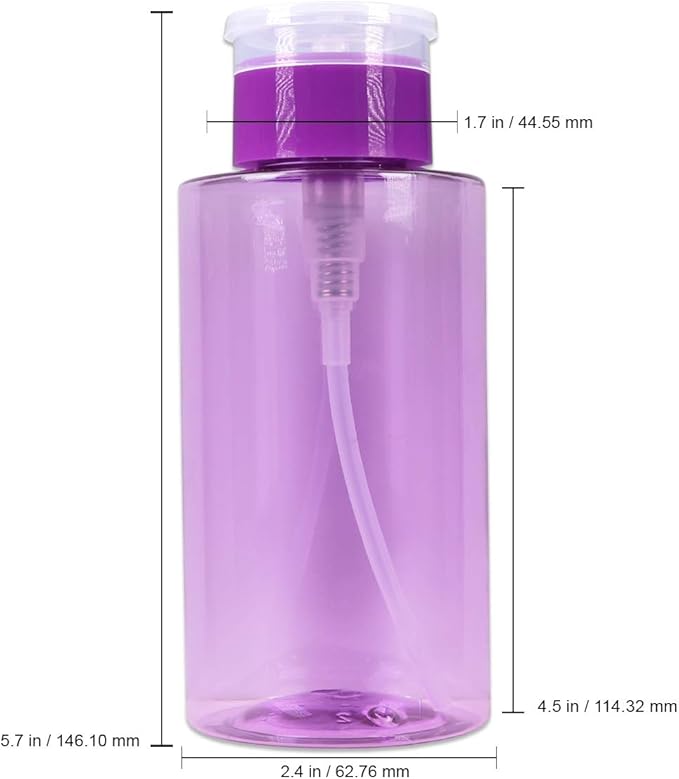 10oz Purple Push Down Pump Dispenser Empty Refillerble Bottle with Flip Top Cap - for Nail Polish, Travel, Cosmetics Packaging