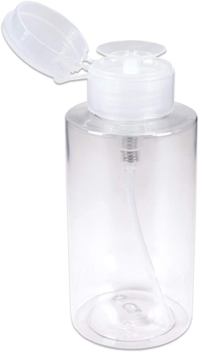 10oz Clear Push Down Pump Dispenser Empty Refillerble Bottle with Flip Top Cap - for Nail Polish, Travel, Cosmetics Packaging