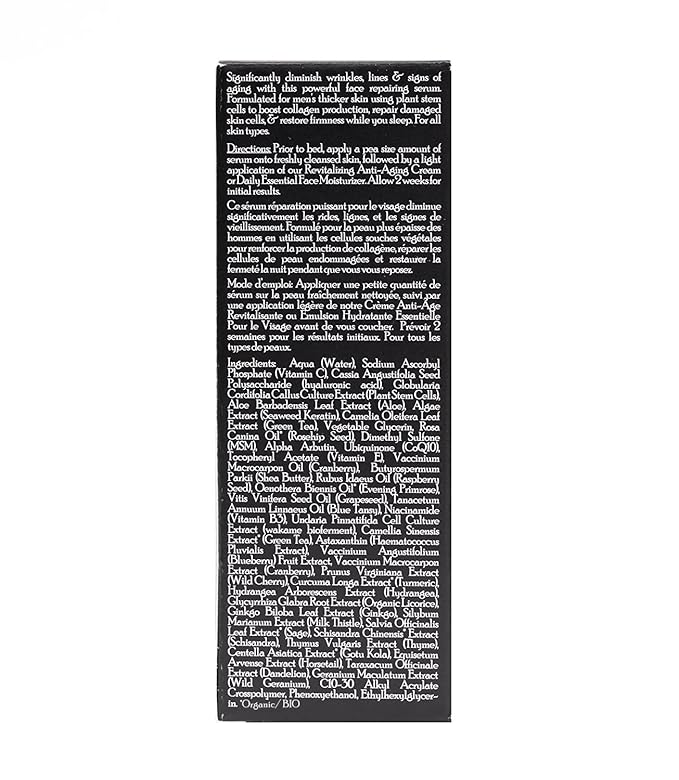 • How It Works: Our men’s face serum uses an exclusive combination of powerful, natural ingredients. It penetrates quickly into the skin to firm, restore and revive collagen production.