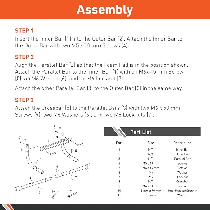 • Instructions Included. Body Sport 3-In-1 Pull-Up Bar is easy to assemble and comes with a instruction manual.