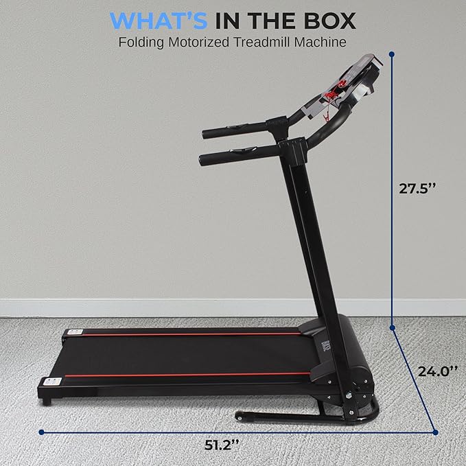• Safe To Use: Stay Safe & Get An Effective Workout With This Foldable Treadmill. It Comes With Integrated Safety Key & Emergency Shut-Off Button To Cut Power Instantly. Perfect For Jogging, Walking, Running & Cardio Workout At Home. Total Folded Dimensions (L X W X H)- 49.6 X 24.0 X51.2 Inches
