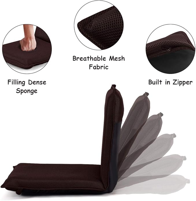 • 【Adjustable Six Positions】Our floor chair can be easily adjusted into 6 different positions and safely fixed in your favorite position.