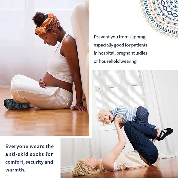 • Premium Cotton to Keep Dry: These women socks grip are made of natural combed cotton, which features a hollow fiber structure that regulates temperature, keeping feet cool in summer and warm in winter. Help your feet manage moisture and dirt more effectively than traditional socks