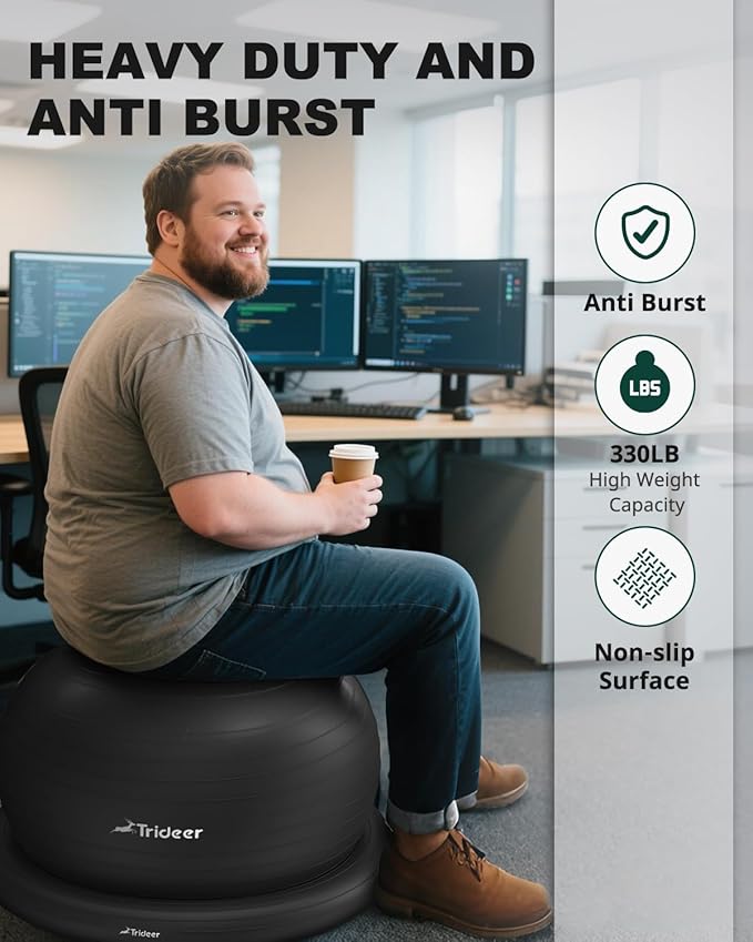 Trideer Exercise Yoga Ball Chair with Base for Home Office Desk, Stability & Fitness Ball Seat to Relieve Back Pain, Home Gym Workout for Abs, Pregnancy Ball with Pump