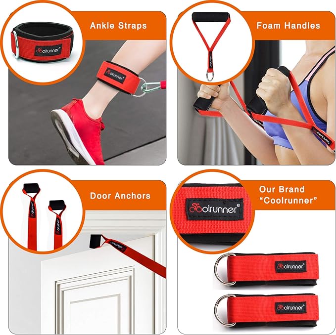 Coolrunner 14 PCS Resistance Bands Set, Exercise Tubes, 20lbs to 40lbs Workout Bands with Handles Protective Nylon Sleeves Door Anchor Ankle Strap, Elastic Exercise Bands for Men Women - up to 150lbs