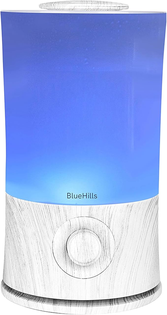 BlueHills Premium 2000 ML XL Large Essential Oil Diffuser Aromatherapy Humidifier for Large Room Home 40 Hour Run Huge Coverage Area Lights 2 Liter Extra Large Capacity Diffuser White Wood Grain E004