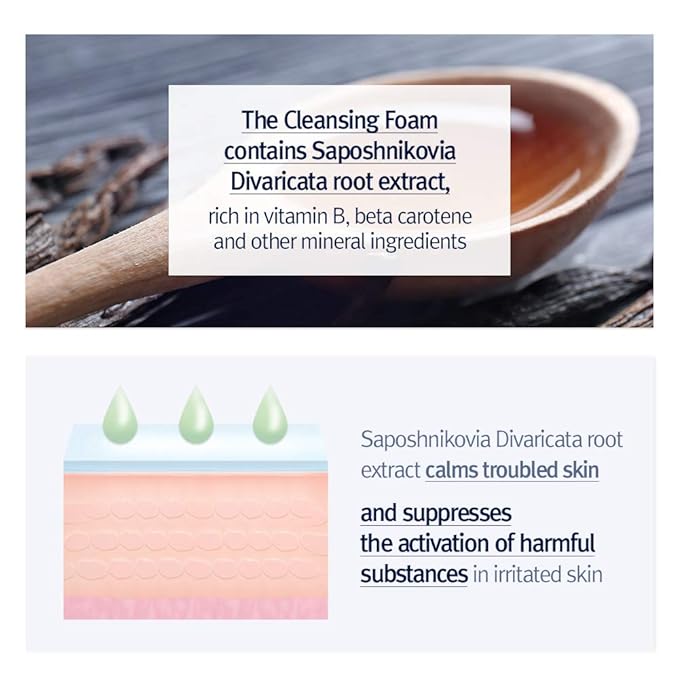 • Calming and Moisturizing: Saposhnikovia Divaricata root extract creates a moisture barrier which minimizes moisture loss after cleansing, calming sensitive skin and suppressing the activation of harmful substances