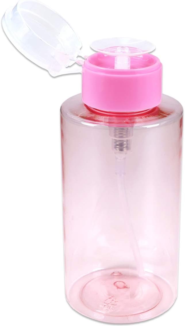 10oz Pink Push Down Pump Dispenser Empty Refillerble Bottle with Flip Top Cap - for Nail Polish, Travel, Cosmetics Packaging