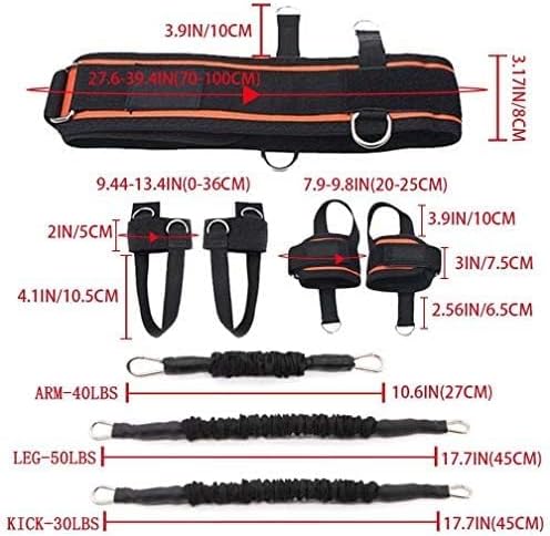 • strength training set conforms to most people's use:Arm resistance value:45LB, Leg resistance value:55LB, Belt size applicable range:30 - 40 LB