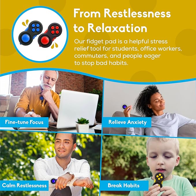 • Helpful in Maintaining Focus and Relaxation: The PILPOC Fidget Pad Controller is designed as a tool to aid in maintaining focus and relaxation. It is suitable for a wide range of users, including students, office workers, and those who enjoy tactile stimulation to stay engaged and relaxed.