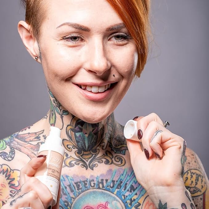 • Recommended Uses For Product : Daily Makeup Routine: Use as a lightweight alternative to foundation for everyday wear, providing natural-looking coverage and hydration., Gentle Coverage for Sensitive Skin: Provides lightweight, non-irritating coverage that’s ideal for concealing redness without exacerbating sensitivity., Moisturizing Base: Acts as a hydrating layer for those with dry or combination skin, offering long-lasting comfort., No-Makeup Look: Perfect for achieving a radiant, "barely-there" finish that enhances your natural glow., On-the-Go Touch-Ups: Compact and convenient for quick skin fixes throughout the day., Post-Treatment Recovery: Suitable for use after non-invasive skin treatments, helping to mask redness and nourish the skin as it heals., Redness Neutralizer: Helps reduce the appearance of skin redness caused by conditions like rosacea, delivering a calm and even complexion., Sensitive Skin Care: Suitable for soothing and calming irritated or acne-prone skin due to its honey and propolis infusion., Skin Tone Correction: Ideal for evening out skin tone, neutralizing redness, and concealing minor blemishes., Sun Protection: Use as part of your morning routine to protect skin from harmful UV rays with built-in SPF. Daily Makeup Routine: Use as a lightweight alternative to foundation for everyday wear, providing natural-looking coverage and hydration., Gentle Coverage for Sensitive Skin: Provides lightweight, non-irritating coverage t… See more