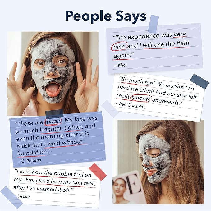 • How to Use 1. Before use, please rub the surface of the pouch to mix the contents well. 2. Take out and unfold the mask. Apply the mask over a dry face in alignment with the face shape. 3. Wear the mask for 10-15 minutes. Remove the mask when the oxygen bubbles have risen sufficiently. 4. Rinse your face with lukewarm water.