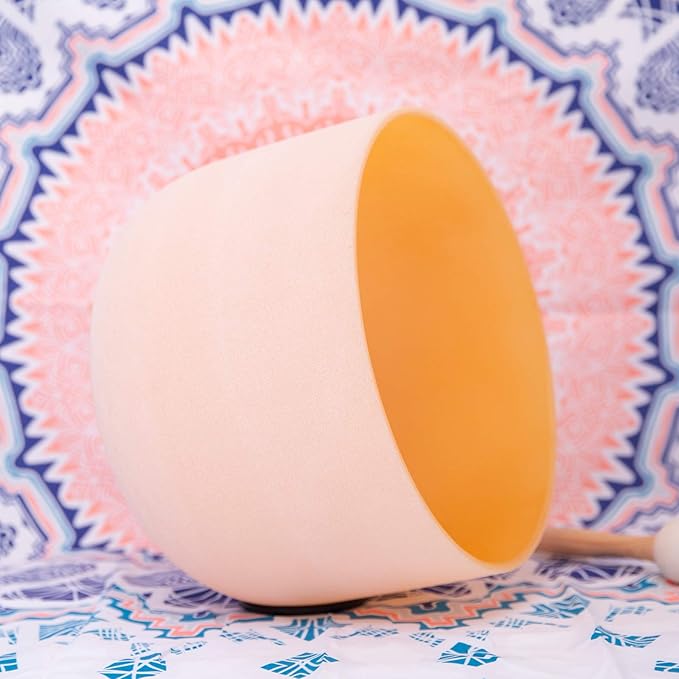 ENERGYSOUND 432Hz Perfect Pitch D Sacral Chakra Orange Colored Frosted Quartz Crystal Singing Bowl 10 inch mallet & o-ring included