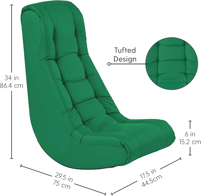 Factory Direct Partners Soft Tufted Floor Rocker - Cushioned Ground Chair for Kids Teens and Adults - Great for Reading, Gaming, Meditating, TV - Green, 10488-GN