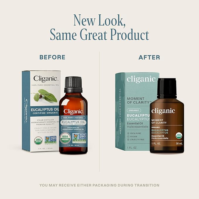 Cliganic Organic Eucalyptus Essential Oil, 100% Pure | Natural Aromatherapy Oil for Diffuser Steam Distilled | Non-GMO Verified (Packaging May Vary)
