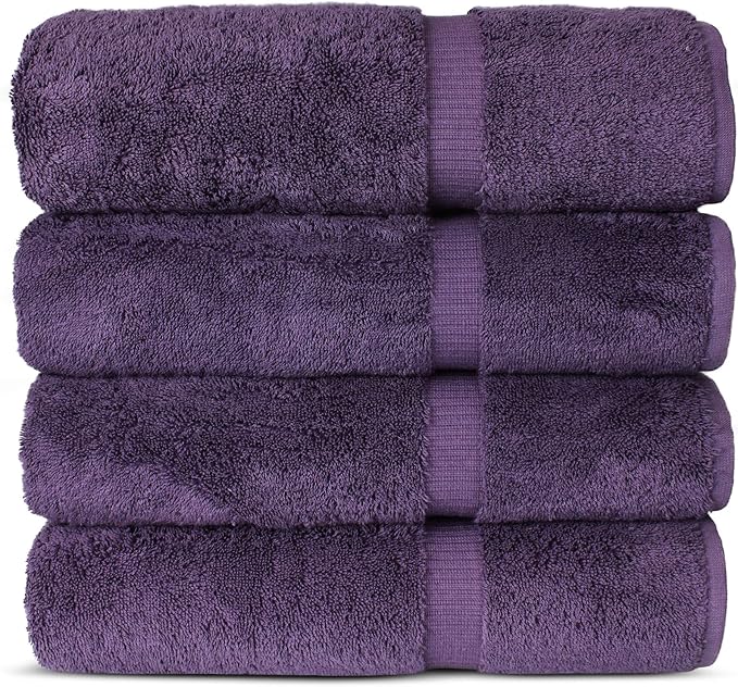 Chakir Turkish Linens 100% Cotton Premium Turkish Towels for Bathroom | 27'' x 54'' (4-Piece Bath Towels - Plum)