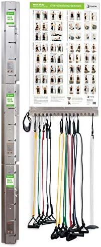 • What's Included. You’ll be ready to work out in minutes with this space-saving unit! This system comes with three Stainless Steel Exercise Rails (with mounting hardware and Safety Slides included), 1 Stainless Steel Storage Rack (with sixteen positions), 1 Exercise Poster, 1 Shoulder Pulley, 5 Unilateral, 5 Bilateral ExerBand Resistance Tubes, and 1 Extremity Strap. Each ExerBand Resistance Tube and the Shoulder Pulley comes with an attached Web Anchor Strap.