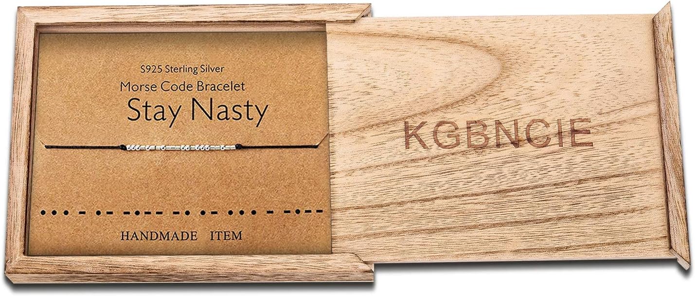 KGBNCIE Morse Code Bracelet for Women Sterling Silver Beads on Silk Cord Secret Message Fuck Friendship Inspirational Encouragement Bracelet Gift for Her