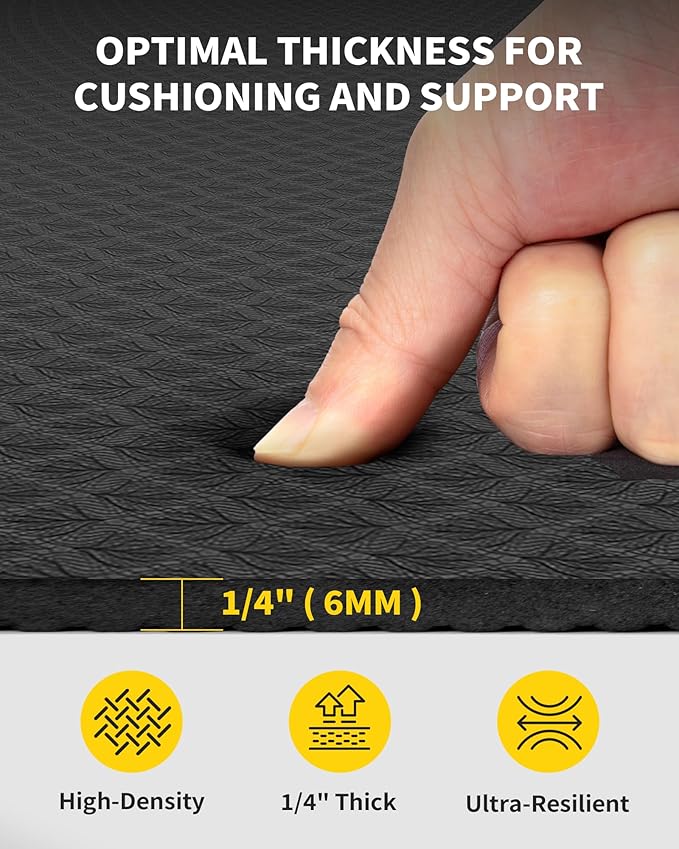 • Fitness Without Restriction: Extra length and width(72"x 48"), You will never feel restricted or limited by the size of this fitness mat; Extra-large space allows you to do any Yoga Poses, Pilates, Stretch, Foam Rolling, Cardio Workouts, Meditations and various barefoot bodyweight training like Squats, Lunges, Push-ups, Plank Variations, and Calisthenics