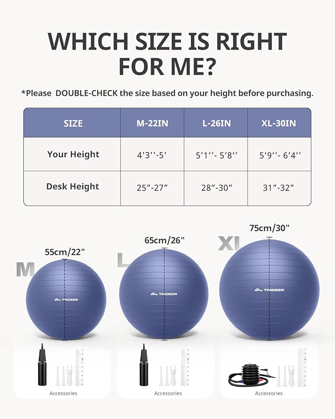 Trideer Exercise Ball Yoga Ball – Office Seating & Balance Ball Chair, Stability Ball for Pilates, Physical Therapy,Core Training & Balance Improvement & Stretching