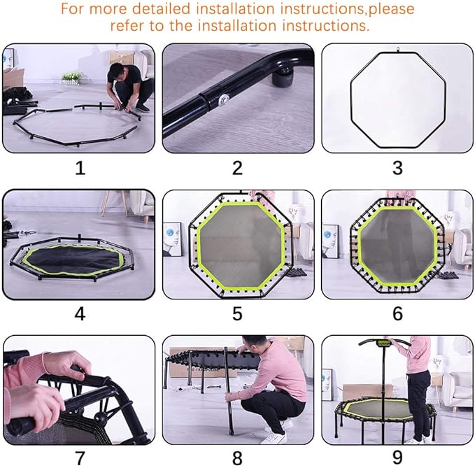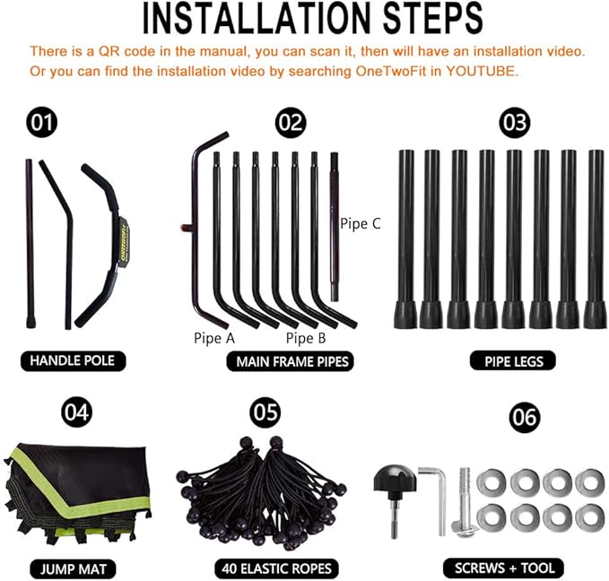 • 【NOTE】Trampoline equipment setup requires some physical labor-please read user manual or find the installation video by searching OneTwoFit in YOUTUBE for set-up and it is best having two people available set-up