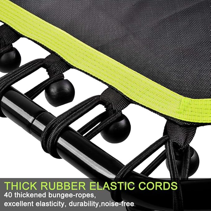• 【Rugged Elastic System】Enjoy a spacious bouncing surface.The bungee-rope design system with 40 thickened ropes which are 0.32"(8MM) of diameter provides joint-friendly suspension, affords more stability, reduces noise in maximum extent, and gives you a great jumping experience. Special tool is included for assembly