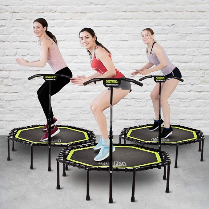 ONETWOFIT 51" Silent Trampoline with Adjustable Handle Bar, Fitness Trampoline Bungee Rebounder Jumping Cardio Trainer Workout for Adults…