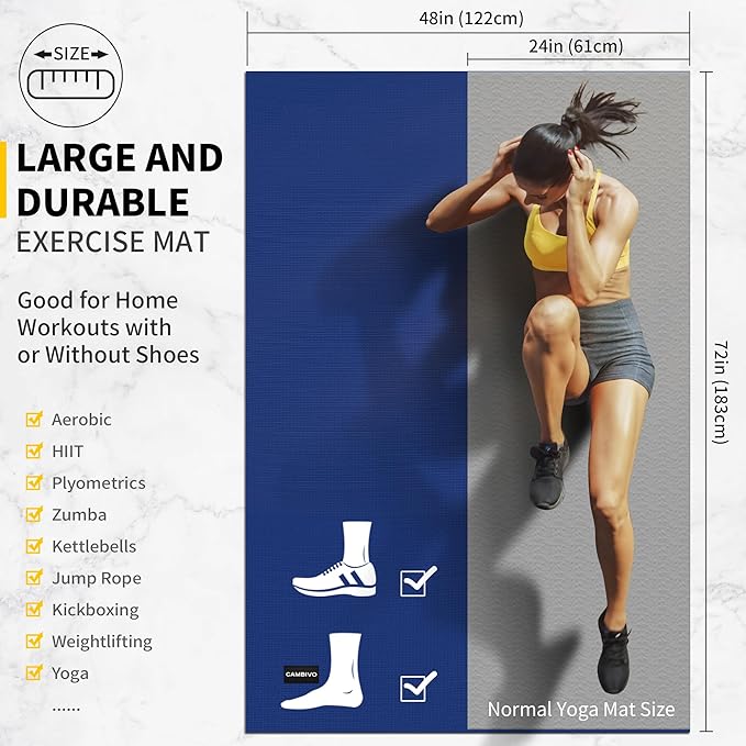 CAMBIVO Large Exercise Mat for Home Workout, 8'x6'/7'x5'/6'x4' (7 mm) Extra Thick Exercise Mat for Home Gym, Shoe-Friendly, Non-Slip Gym Mat for Jump Rope, Weights, Cardio, Fitness