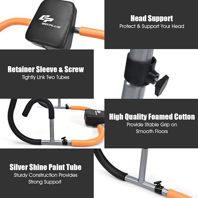 • 💪【Durable Material & Sturdy Construction】 Made of durable steel, this abdominal exercise machine has a sturdy construction and long service life. In addition, it is covered with a soft foam padding that can add comfort to the user and provide a stable grip on a smooth floor as well.