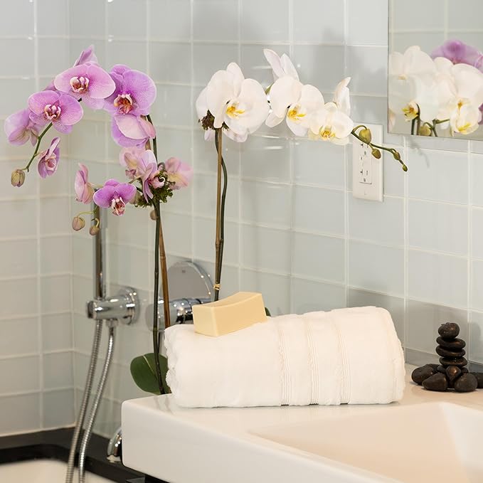 • 50% Viscose Made From Bamboo & 50% Aegean Turkish Combed Cotton, 700 GSM, Dobby Border, 2-ply Twisted Yarn – Carefully crafted with optimal weight and thickness to soak up water and comfort your skin. Double twisted yarns are spun out of extra-long fibers to ensure superior quality and performance. Buy individually or in Family Multi-Packs.