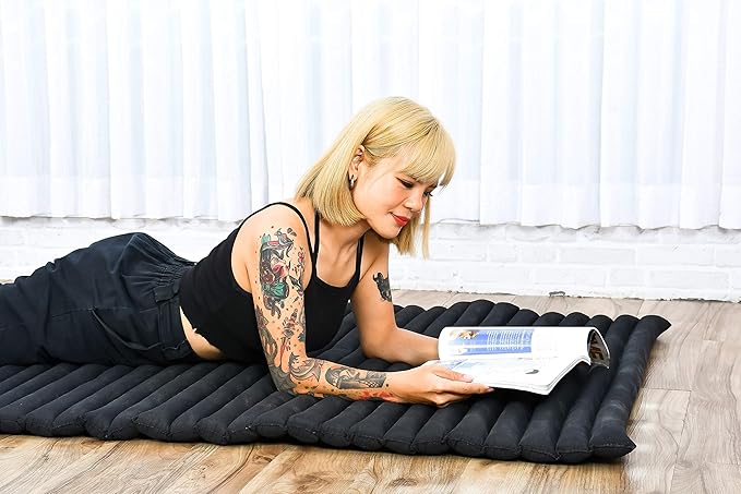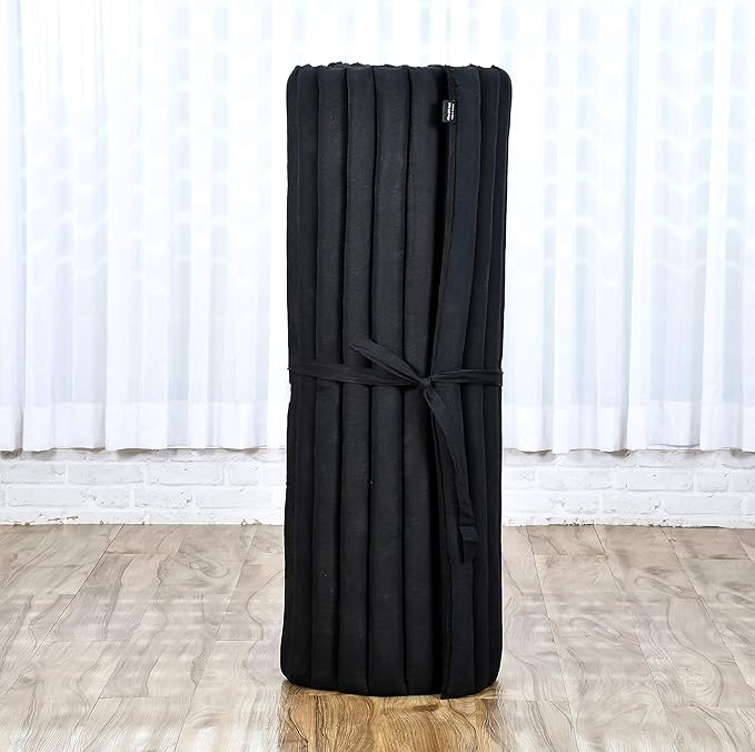 Leewadee - Kapok Roll Mat – Handcrafted Folding Sleep & Relaxation Mattress from Thailand, Ideal as Guest Bed, Camping Mat, Yoga Mat or Traditional Futon, 75 x 39 inches, Black