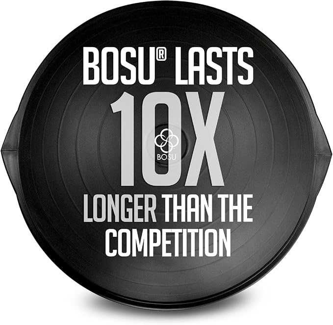Bosu Balance Ball Exercise Trainer, Home Gym Equipment w/ Guided Workouts & Pump, 26", Blue - Inflatable Fitness Platform for Strength Training, Standing, Balancing, and Core Workout