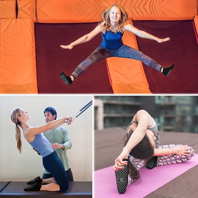 • High Elasticity Socks: High elastic non skid sticky grippers socks are available in all sizes so everyone can enjoy. These socks are made with soft fiber for their elasticity and snug fit, embracing your feet like second feet. Performance can also come with extra comfort. Yoga Socks easily absorbs and evaporates sweat, you can always enjoy perfect stability, no matter how slippery the floor is!