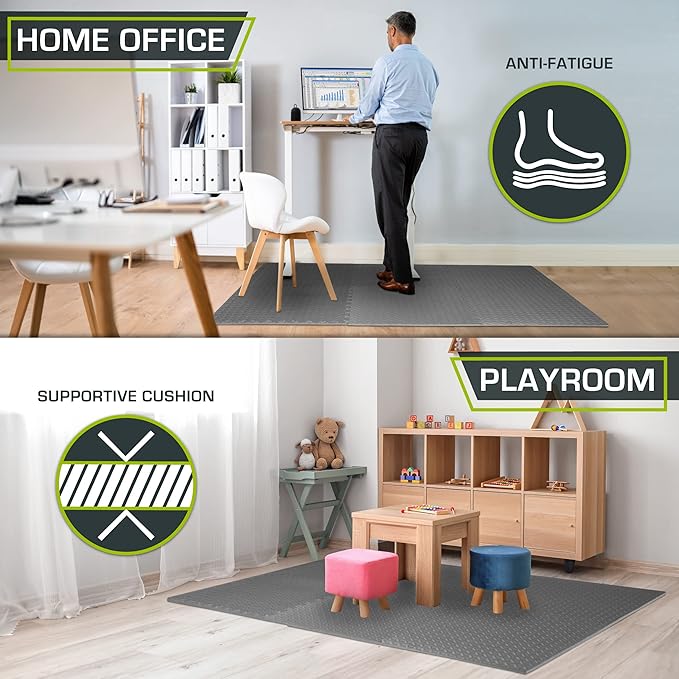 • Versatile – The water-resistant, noise-reducing design is easy-to-clean, great for indoor purposes like in garages as a protector, gyms, a home fitness room, or even children’s play areas as a playmat.