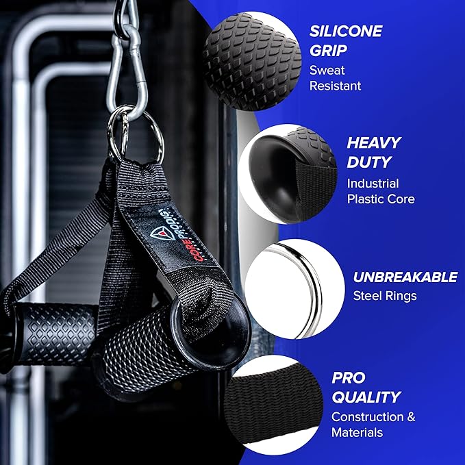 Core Prodigy Heavy Duty Exercise Handles - Grip Attachments for Cable Machine Pulleys, Gym Equipment, Resistance Bands, and Weight Lifting